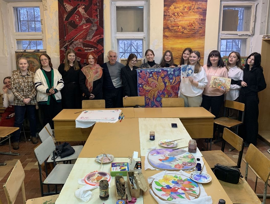 Экскурсию для юных гостей провел человек-легенда, чье имя является синонимом качества и творческой мудрости — Заслуженный художник России Бабаев Армен Гургенович. Его рассказ — это была не сухая лекция, а искренняя беседа Мастера с теми, кто только начинает искать свой путь.